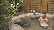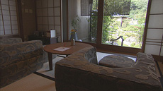 最後は、宮島対岸の温泉旅館へ。 まず離れに通された2人、部屋の中から見える美しい庭園に感動! その景色を眺めながら、名物の穴子料理をいただきます! 温泉は岩の露天風呂で、身も心も癒される2人。しかもこの日帰りプラン、アフタヌーンティーも楽しめるコースだとか!素敵なお庭の散策もでき大満足!!