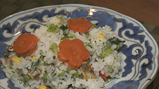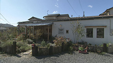 次になべさんと松本は、住宅地にある明治時代の古民家を改装したギャラリーへ。 広がるのは和風庭園。野草を約20種類植え、里山の雰囲気を醸し出しています。 オーナーは、シニア野菜ソムリエの資格を持つ女性。庭で育でたレモンを使って作る簡単料理に2人は大満足!