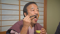 町歩きに疲れたら「石臼挽きのコーヒー」でひと休み!なんと「つぶあん」を入れて飲むのが倉吉流?!創業100年以上の老舗餅屋でも名物を発見!12種類もの薄切り餅を、上品な白だしでしゃぶしゃぶ!?味のバリエーションに二人はびっくり! なべさんお待ちかねの「造り酒屋」にもお邪魔。その名も、東郷平八郎元帥から蔵銘をいただいたとか!伝統に思いをはせながらなべさんもゴキゲンに。