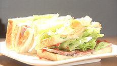 続いて、海田にあるサンドイッチ専門店へ。40種類以上が並ぶ店内には旬のフルーツや、ローストビーフ、柔らかいフランスパンを使ったサンドイッチなどオリジナルのパンがいっぱい!地元に愛されるサンドイッチを作って27年、お店を続けていく秘訣とサンドイッチへの想いとは?