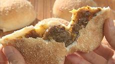 さらに2人は庄原へ。ここには発売から1か月で何と1,700個売れたカレーパンがあるとか!地元のカレー屋さんの発案で、地元で採れた野菜と和牛を煮込んだルーを使い、試行錯誤のすえ完成した庄原産米粉の絶品焼きカレーパンに舌鼓!