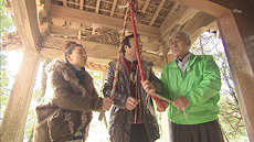 そして、湯治の宿として利用される木造旅館へ。びわの葉を巻いて作った巨大なお灸に、松本ビックリ!その効き目は...?自家製無農薬野菜を中心とした、女将自慢の絶品春会席に大満足!