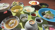 宿所有の畑で育てた無農薬の野菜を中心にしたこだわり食事を作る宿。湯治に最適