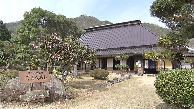 世羅のグルメももちろん堪能!弘法大師ゆかりの名物饅頭に、旬の野菜や山菜を使った、昔懐かしい味の田舎料理も満喫。推定300年ほど前のこの古民家、、じつは世羅町出身である有名大学の創立者に関係しているんだとか・・・。