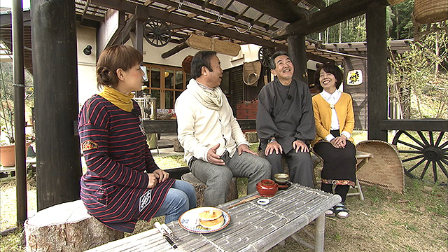 まずは週末だけ自宅で営む、Iターン夫婦のカフェへ。念願の田舎暮らしを実現した、地域のおうちカフェとして大評判のお店、ご主人の淹れる美味しいコーヒーと奥様自慢の手作りパンがいただけます。なべさんたち、仲良しご夫婦に癒された後はいよいよ世羅町の歴史めぐりへ。