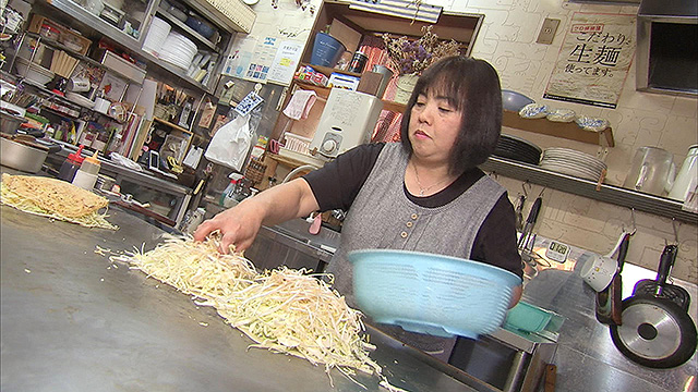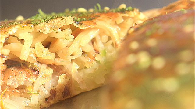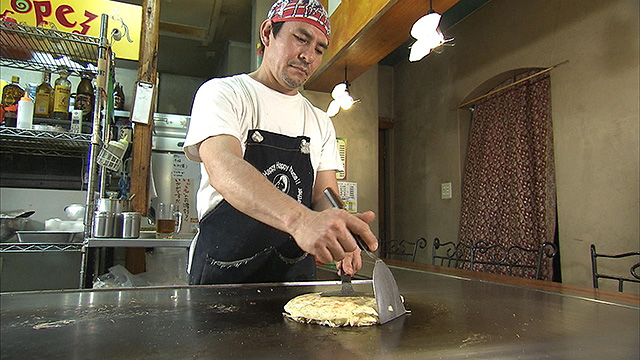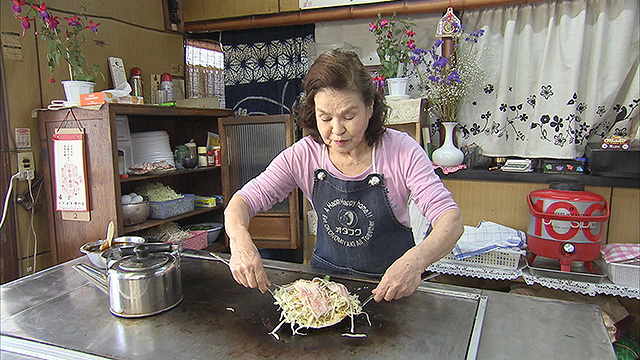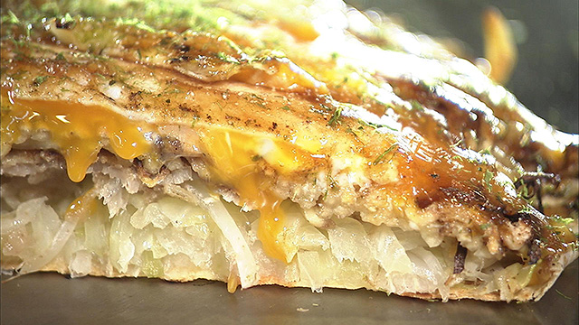 つづいて、あの名店「八昌」と深いつながりを持つお店に訪れます。昭和30年代の屋台から始まった「八昌」、その創業者の娘さんが営むお店です。「八昌」ゆずりの華麗な技とオリジナルメニューに、なべさんたち大満足!幼少から、お好み焼きを焼く父母の姿を見て育ったというだけあって、その無駄のない華麗な動きはさすがのもの!しかも日本人が大好きなあの料理とお好み焼きを一緒にしちゃった!?はたしてそのお味は・・・?