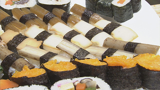 続いて向かったのは道の駅!しかも大きな和太鼓が目印!?神楽がさかんなこの地で大人気のビュッフェレストランはなんと300軒もの地元農家と契約しています。農家の方々が丹精込めて作る旬の野菜と、こだわりのお米を使った80種類もの料理が選び放題で、なべさんたち大興奮!!