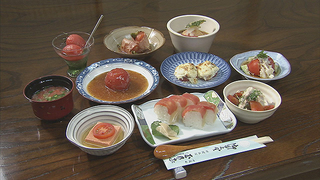 世羅町にある、昭和2年創業の老舗旅館「玉乃屋」。ここでは女性客に大人気の一風変わった懐石料理、その名も「トマト懐石」をいただきます!トマト豆腐にトマト寿司、10種ものトマト尽くしメニューになべさんたちも驚愕!そんな懐石を始めたきっかけとは?夫婦のなれ初めまで聞いちゃいます!