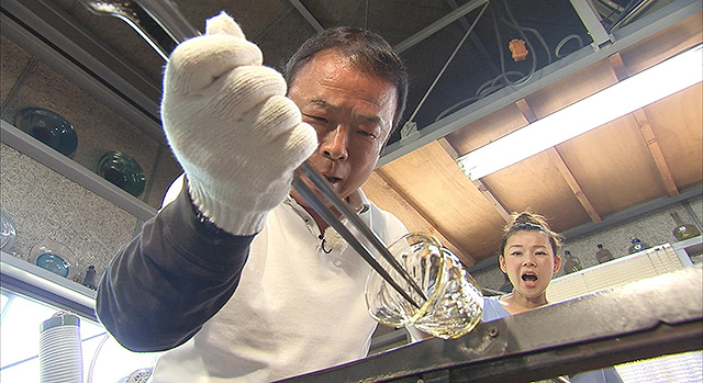 最後は生口島、瀬戸田町へ。息をのむほど美しいブルーが特徴的なガラス工芸・・・。この島で生まれ育ったガラス作家が作るこだわりの作品にうっとり!
