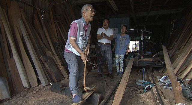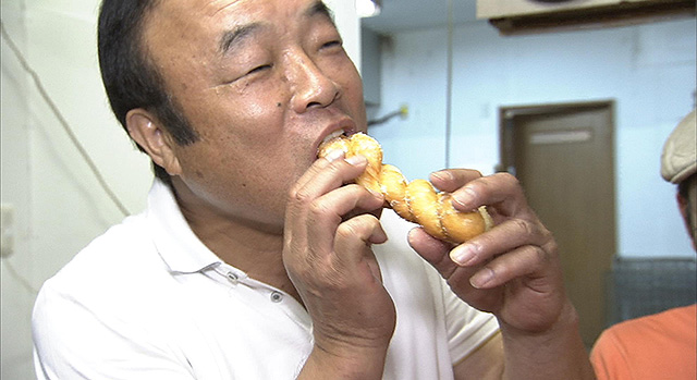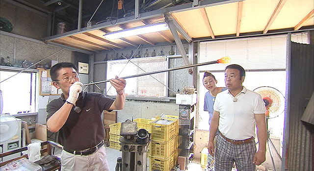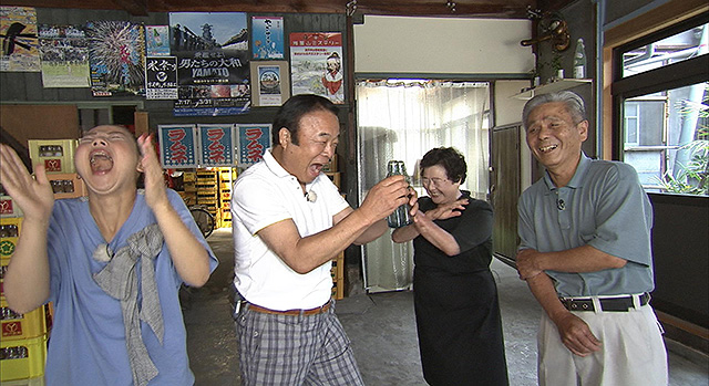 渡船に乗り込み「向島」を目指すなべさんと松本。船上、二人の目に飛び込んできた対岸の看板に「ろ」の文字が?!そこは、船に使う「櫓(ろ)」の工房。国内でただ一人ともいわれる職人さんの熟練の技に感激したふたり、早速"矢切の渡し"よろしく櫓の使い心地を体験します!!続いては向島の歴史ある商店街をぶらり。「ねじパン」や「メロンパン」が昔懐かしい老舗パン屋は戦時中、パンの配給所だったとか?!さらに「鉱泉所」なるものを発見!そこはおしどり夫婦がしまなみ唯一の「瓶入りラムネ」を作る創業5年の製造所。昔ながらの爽快な炭酸になべさん「プハーーッ」