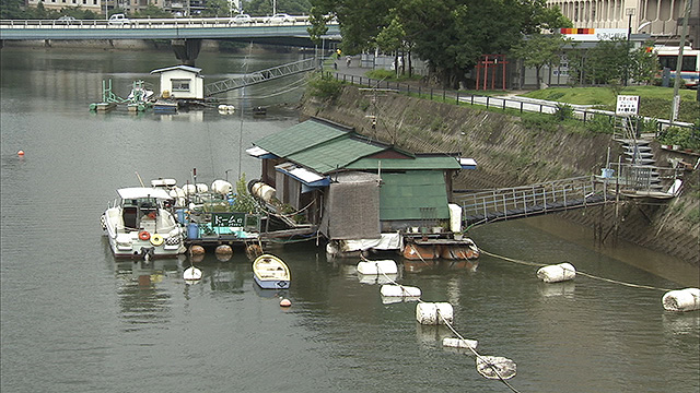 つづいて猿猴川に浮かぶ"謎の家"を発見?!なんとそこには人が住んでいて、「水上タクシー」の看板まで!!どうしてここに住むようになったのか?家の中を案内してもらいながら戦後の川べりの歴史にも思いをはせ...さらにご主人の水上タクシーで猿猴川クルーズ!老舗カメラ店のご主人に猿猴橋の復刻への思いを聞きながら、秘蔵の写真も大公開!かの有名な○○軍団が広島で、、、?