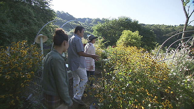 一方、広島市南区旭町にあるのは、その名も「花の散歩道」。ガーデニングアドバイザーの女性が、昭和40年代に建てられた長屋のアパートを改装し2軒は店舗と教室スペースに。緑のコミュニティーを目指し、道路わきには緑の植栽が並んでいます。そして、長屋の奥には、ご自宅が...。周辺の緑を借景にした洋風なガーデンに心が癒やされる2人でした。