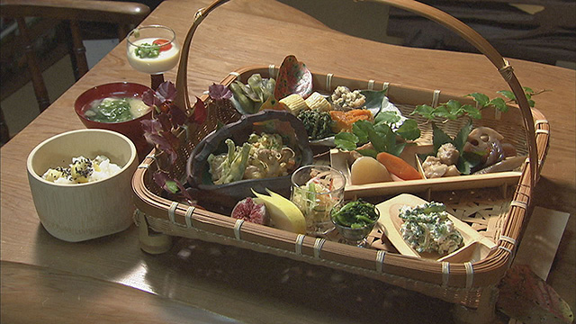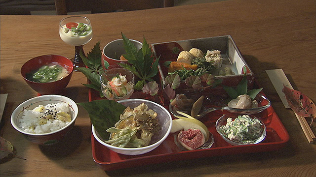 最後に登場するのは、庄原市総領町の山あいに佇む築200年の古民家。自宅を使ったこのお店の特長は、「ありのままを感じて欲しい」とあえて建物に手を加えないこと。その空間で提供されるお料理は、ご主人が開発した"エコストーブ"で炊いたご飯に、地元野菜にこだわった奥さんの手料理「里山快席」。とっても素朴な味わいに、"心が和む"そんなうれしい時間が流れます。