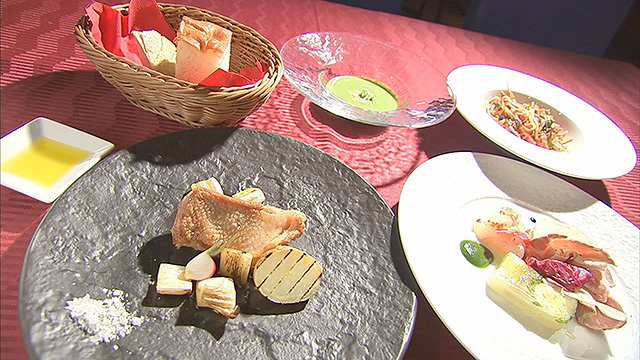 続いては海と山、豊かな食材に恵まれた邑智郡邑南町にある「素材香房 AJIKURA」。A級食材と凄腕シェフの作るイタリアンが評判のこのお店で絶品コースをいただきます!