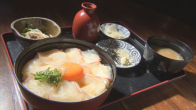 まずは腹ごしらえ!あつあつのご飯に新鮮な鯛のお刺身を敷き詰めた「鯛めし」。タマゴの黄身と生醤油をかけた広島ではあまり味わえない一品になべさん大満足。また、内子の新名物も登場します!