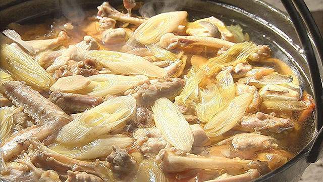 そして今宵の宿、内子町のお隣、大洲市にある「小藪温泉」に到着。ここは山道を分け入ったひなびた一軒宿。本館は有形文化財に指定されている風情あるお宿。そこで2人は美肌の湯を堪能し、囲炉裏端でいただくお宿ご自慢の田舎料理に大満足!名物きじ鍋もいただいちゃいま~す!