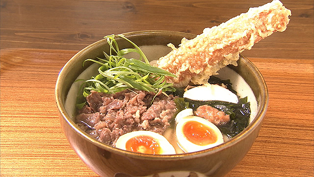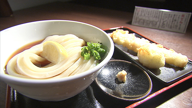 昭和26年創業の博多うどんの老舗は、今もほぼすべての材料を自家製造でまかなう昔ながらのうどん店。ごぼう天がのっただけのシンプルなうどんを一口すすると、大ちゃん、その深く澄んだダシの味わいにまずびっくり!さらに唇でかみ切れるほどの柔らかな麺に二度びっくり!!その柔らかさの理由とは???