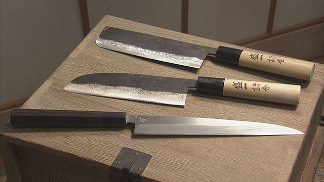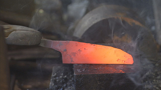お次は、大竹が誇る伝統工芸品「大竹手打刃物」。江戸時代、岩国藩主・吉川公の刀匠となったことが起源。その伝統と秘法を継承、丹精込めて打ち上げられた包丁は50年以上、使えるとの定評が...。匠の技に2人も感動です。