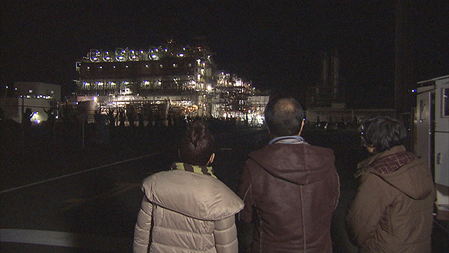 そして、夜の大竹......。海岸沿いに広がる石油コンビナート群は、昭和37年石油化学コンビナートとしては初めて建設されたもの。間近に見ることができる夜景の人気スポットに2人も思わず......
