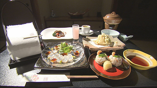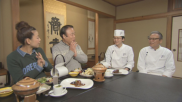 最後は、昭和27年創業の老舗日本料理店へ。代々受け継がれた味は、地元のみならず大人気。今回は、カキに穴子にシイタケなど地元食材をふんだんに使った、番組コラボメニューが登場。大満足間違いなし!ですよ!!