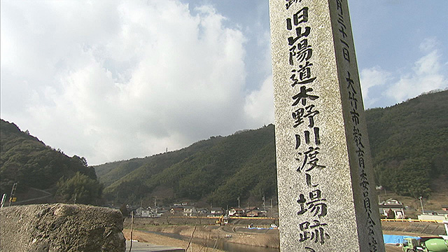 まずは、大竹市内に残る西国街道の跡を巡ります。ここは、かつての安芸と周防の国境。かつて木野川といわれたここ小瀬川を、渡し船で吉田松陰も行き来したとか...。当時の長州と幕府の戦の地など、歴史ロマンを紹介します。