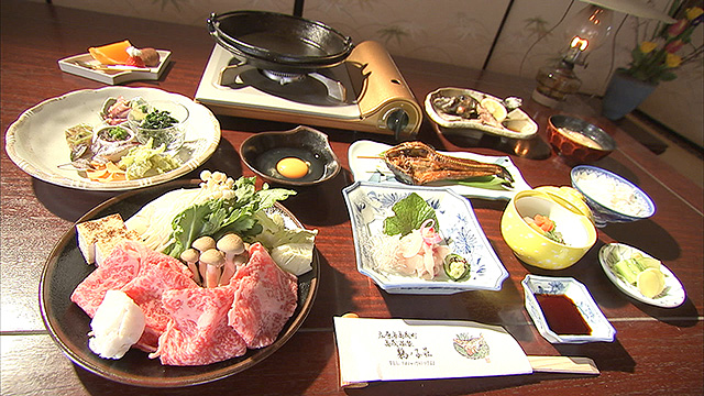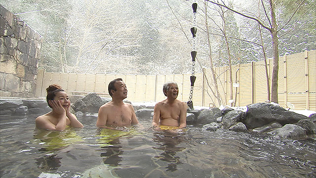続いて2人は県内では数少ない天然温泉が湧く道の駅、「スパ羅漢」へ。そこで雪景色の中、露天風呂を楽しんで、湯あがりにスパ羅漢の新名物、豪華すっぽんフルコースに舌鼓!