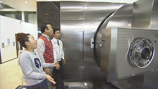 次に、なべさん&松本がお邪魔したのは「熊平製作所」。こちらの創業はなんと明治31年。とっても古くて......とっても珍しい金庫が続々登場。また、業界の常識を打ち破る革新的な挑戦の数々に2人もビックリ!国内最大級の金庫扉は圧巻の一言です。