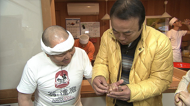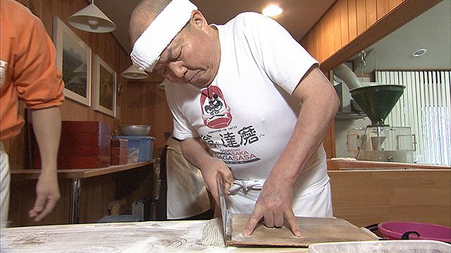 そして、なんとスタジオで名人がそば打ちも披露。