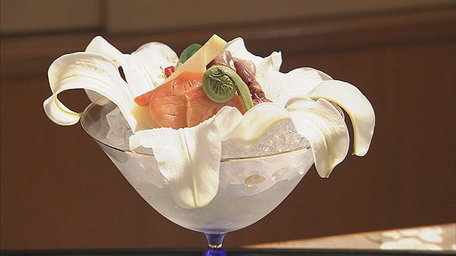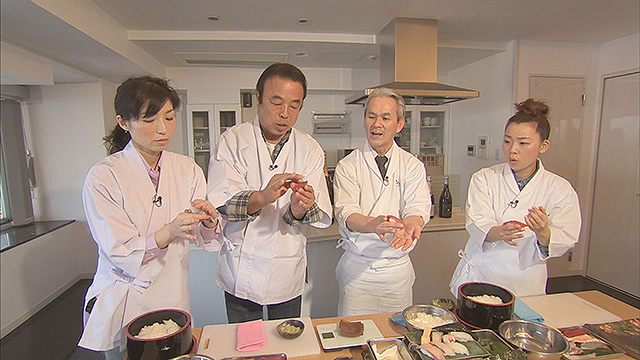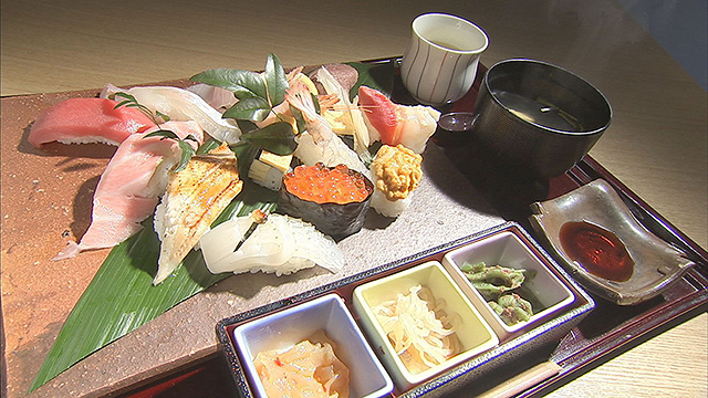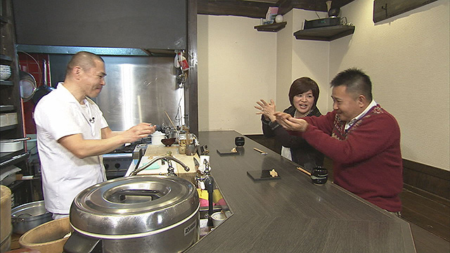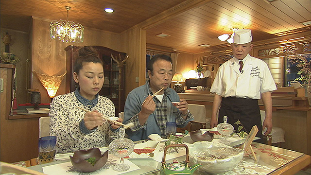 そして、一日一組限定のお寿司屋さんにもお邪魔。住宅街の民家でお店をされています。この店のご主人、料理はもちろんのこと、器にも徹底的にこだわります。記録ノートをつけ、「一度来られたお客さんには料理も器も同じものは出さない」という徹底ぶり。極上の味と雰囲気にご満悦な2人でした。