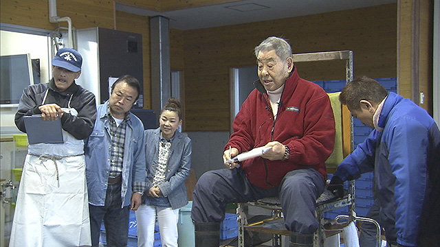 2軒目は、なんと山口県柳井市で魚市場を経営する会社が、広島市内に出している回転すし店。鮮度抜群の魚介類!その日の入荷状況によりお勧めのにぎりを味わう2人。回るすしと侮るなかれ!また、その魚市場では、83歳でセリに立つ会長と遭遇。お元気な姿に2人とも脱帽です。