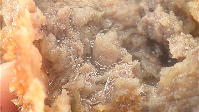 なべさんと松本が、そんな歴史散策の前にまず立ち寄ったのは、なんと明治10年創業の老舗お肉屋さん。地元の人々に絶大な人気を誇るこのお店の絶品ミンチカツをいただきます。