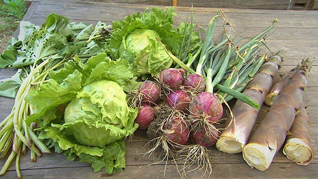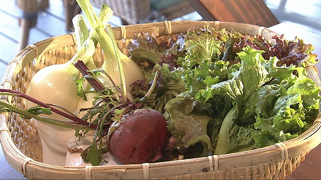 そして、こちらのお店で提供される野菜。実は安佐南区沼田町吉山地区にある自家農園で栽培されているものもあるんだとか。良い食材を使って、良い料理を提供したいとの思いから、食材作りを決意。地域の人々とも協力しながら日々、美味しい野菜を作っています。そんな農園の中にも、新鮮野菜を食べられるお店が・・・。野菜をふんだんに使ったパスタのコースは、吉山の恵みがたっぷり。川音そして鳥のさえずりを聞きながら至福の時間を堪能する2人でした。