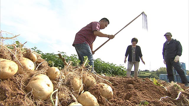 一方、大ちゃんと伊藤アナの食いしん坊コンビが向かったのは、東広島市安芸津町。安芸津といえば、もちろん「まるあかブランド」で知られるじゃがいもが名物。道路沿いの露店で、コロッケやまるあかバーガーをほおばる2人。今では、人気の名物露店になりましたが、、、それまでには様々な苦労があったんだとか?今からがまさに旬!特産のじゃがいもをいただきます。