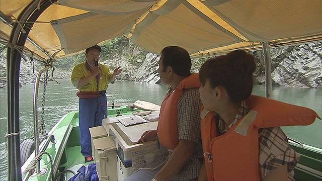 なべさんと松本が最初に訪れたのは、大歩危・小歩危。数億年もの時を経て作り上げられた渓谷美は圧巻の一言。観光遊覧船で、その迫力を体感します。