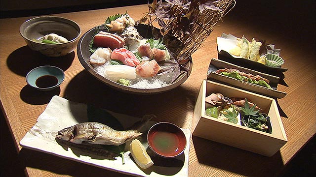 お次は、銀山町にあるその名も"旬菜料理とうどんのお店"。瀬戸内海の新鮮なお魚料理が食べられるお店なんですが、、、実はコースのシメにうどんが登場するという変わったお店。提供されるうどんは讃岐よりやや細いオリジナルの麺。もちろん出汁にもこだわった本格的な一品。しかも、単品でも40種類のうどんメニューが揃う力の入れよう。オススメの冷たい麺をいただいた2人、、、納得の味でした。
