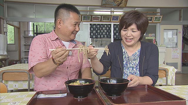 まずは、大ちゃんと伊藤アナが、河内町にある廃校へ。ここでいただけるのは、地元のそば粉を使ったお蕎麦。過疎化が進む地域を活性化させようと、地元の女性グループが始めました。