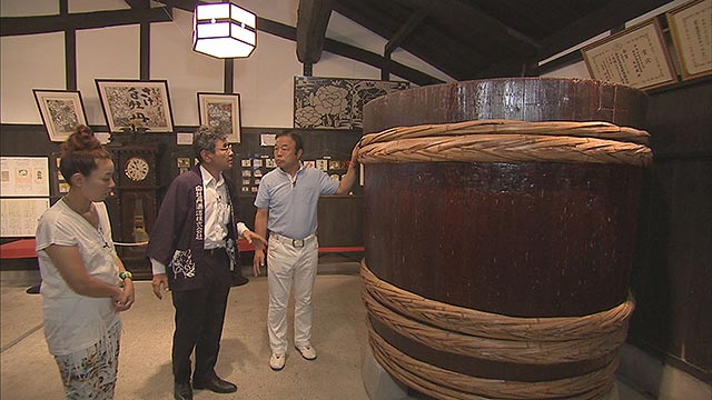ナベさんと松本は、まず、西条の酒蔵へ。「白牡丹」は創業340年を超え、その名前は京都の五摂家のひとつ、鷹司家にちなんだものなんだとか。
