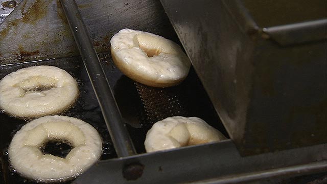 坂出の商店街を巡る2人。こちらでもまずは讃岐名物からいただきます。白味噌の中にあん餅が入ったこの地方独特のお雑煮。なんとも不思議な味に2人もビックリ!そして、老舗のパン屋の名物女将となべさん意気投合!坂出の商店街の人情に触れます。