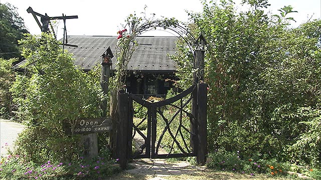 まず、なべさんと松本が訪れたのは、安佐北区の川沿いに佇む元教師のアートガーデン。コンセプトは、四季折々の植物が持つ表情の変化を感じられるような庭。お庭だけでなく奥さんの茶房と、旦那さんの工房があります。実はこのお店、去年の土砂災害によって土砂に埋め尽くされました。1年たった今、色を取り戻した花々の生命力には驚きです。