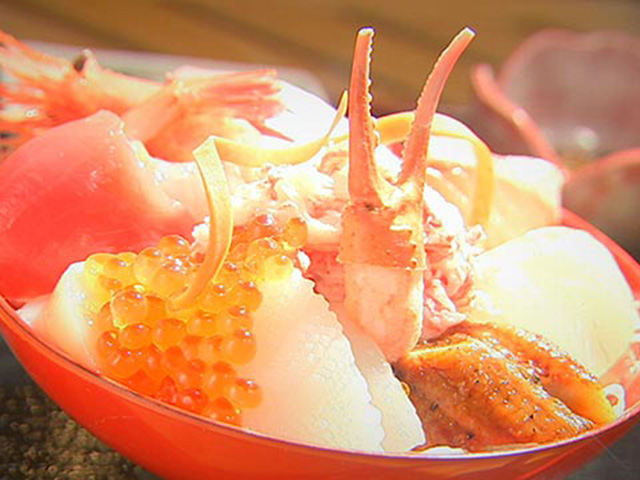 そして、3日目は、世界遺産・五箇山地区へ。合掌造りの家屋が並び、まさに日本の古き良き風景を見ることができます。その後は、富山・新湊漁港の名物・昼セリを見学。紅ズワイガニが一面に並ぶ光景は圧巻です。そして、最後はその富山湾の海の幸がてんこ盛りの海鮮丼に舌鼓。富山湾は天然のいけすと言われ、なんと500種類もの魚介がいるんだとか!最後とばかり、ここでもワガママ言って、とんでもなく豪華な海鮮丼が完成しました。