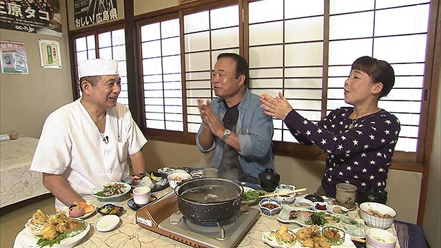 まず2人が訪れたのは昭和55年創業のタコ料理専門店。お店の売りはなんといっても「三原名物タコづくし」。刺身にタタキ、さらにはタコしゃぶまで!タコ料理のバリエーションに2人もビックリ!?タコにかける大将の想いは並々ならぬものがありました!三原のタコを堪能したいならここしかない!!