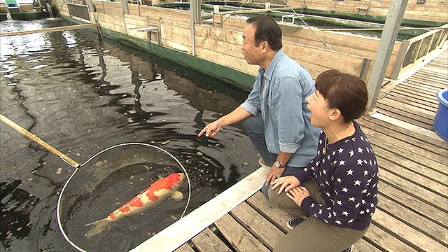 年間2000万匹の稚魚から、選別を繰り返し一級品を作り上げていく仕事。目利きのポイントは、顔、骨格、色、将来性など、社長自らが判断!今年の品評会に出す鯉の美しさに、二人は唖然...。