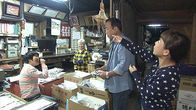 そして2人は、創業嘉永元年の老舗、海産物乾物の石田政造商店へ。いりこ、ちりめん、するめ、タコの天日干しなど、国産、瀬戸内海産にこだわった石田ブランド。明治時代から時代の流れを知る、問屋の話に2人は興味津々。
