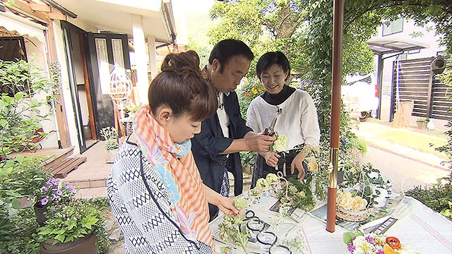 さらに、三次の兒玉邸へ。まるで植物園のような広大な敷地に植わるのは、サツキにアジサイ、シャクナゲ、ツツジ、オオデマリ、コデマリ、ボタン...。まさに日本の原風景が広がっているかのようなお庭。2人は、オオデマリとコデマリのフラワーアレンジに挑戦!その出来栄えは?