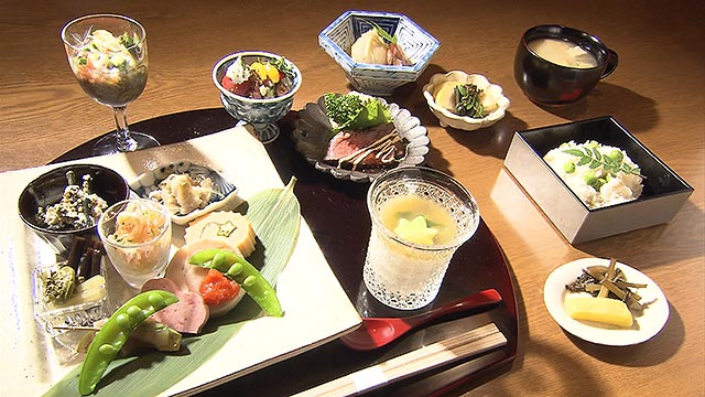 奥様担当の「エマカフェ」は、料理の盛り付けからテーブルコーディネート、器までこだわり、繊細で彩り豊かな創作料理を提供。1日1組限定で、なかなか予約が取れないほど人気の隠れ家カフェなんです。なべさんと松本は、人気のランチに舌鼓!
