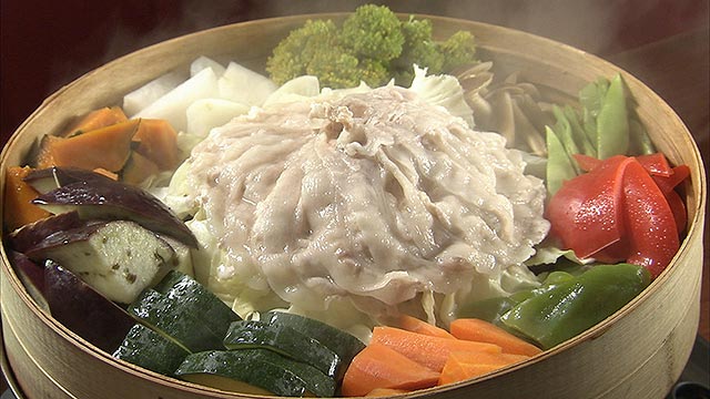 まずは、せいろ蒸しが自慢の「京蒸」へ。親子の愛情がたっぷり詰まった夏野菜を広島産もみじ豚と一緒にいただきます。せいろの蓋を開けた瞬間に広がる癒し効果、その秘密とは一体!?