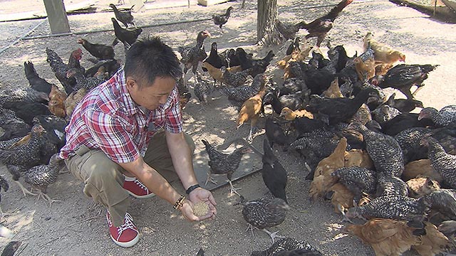 そして、広島産のこだわり肉を探して江田島へ。大自然の中、放し飼いでポークとチキンを飼育するのは、30年間江田島で乗馬クラブを経営する店主。