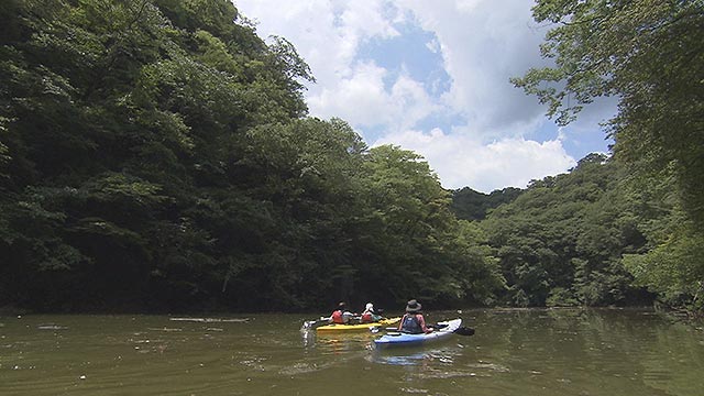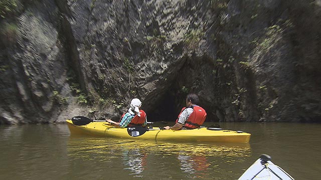 国の天然記念物・雄橋の下流には、カヤックでしか見に行くことができない「幻の雌橋」が!