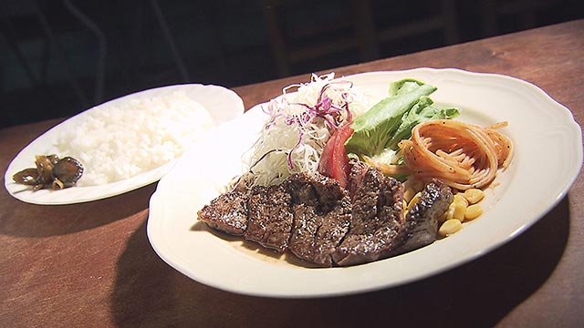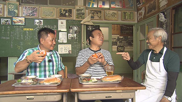 廃校を利用した食堂で出会ったのは「幻の神石高原牛」。脱脂粉乳や冷凍みかんなど、懐かしの学校給食もいただきます。