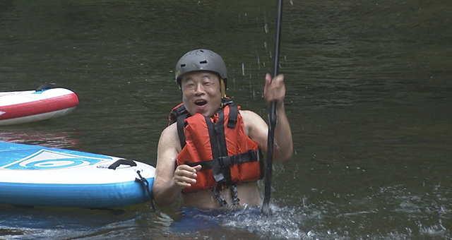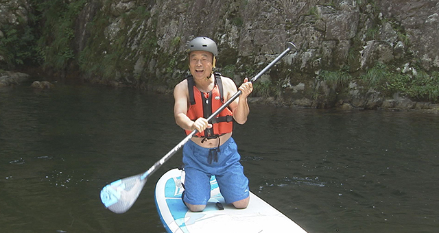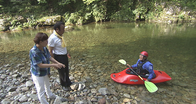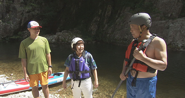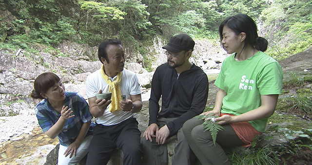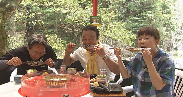 大自然の中で、そうめん流しや川魚をいただき、さらに、三段峡の湧水でお茶を点てる謎の人物に遭遇!安芸太田町で育った黒毛和牛でハンバーガーを作るのは、なんとレスラー!?